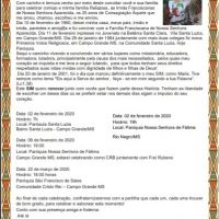 Local: Paróquia Nossa Senhora de Fátima Campo Grande/MS, estarei celebrando como CRB juntamente com Frei Rubens