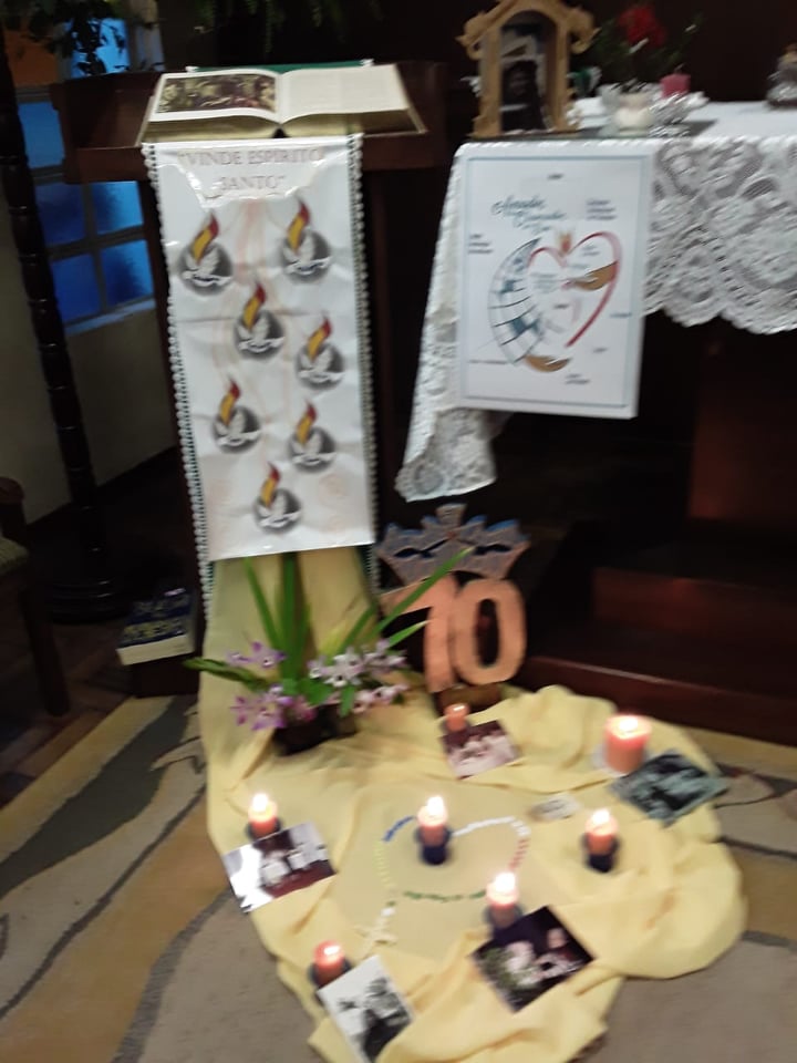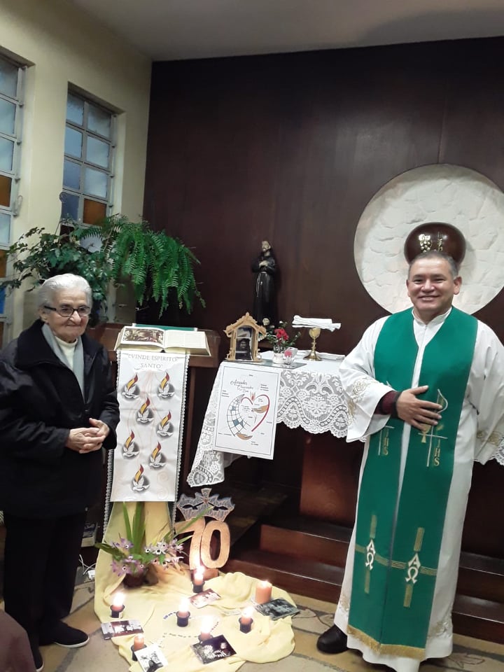 A fraternidade Nossa Senhora do Brasil encerrou, no dia 6 de setembro, o retiro on-line de uma semana, orientado pela Ir. Cláudia Spies Klein, com a celebração dos 70 anos de vida consagrada da Irmã Zoé Piasson. A Missa contou com a presença do Frei Nilo Trindade, da Paróquia São Judas Tadeu. Nossa Gratidão pelo dom do chamado à vida Religiosa Consagrada.