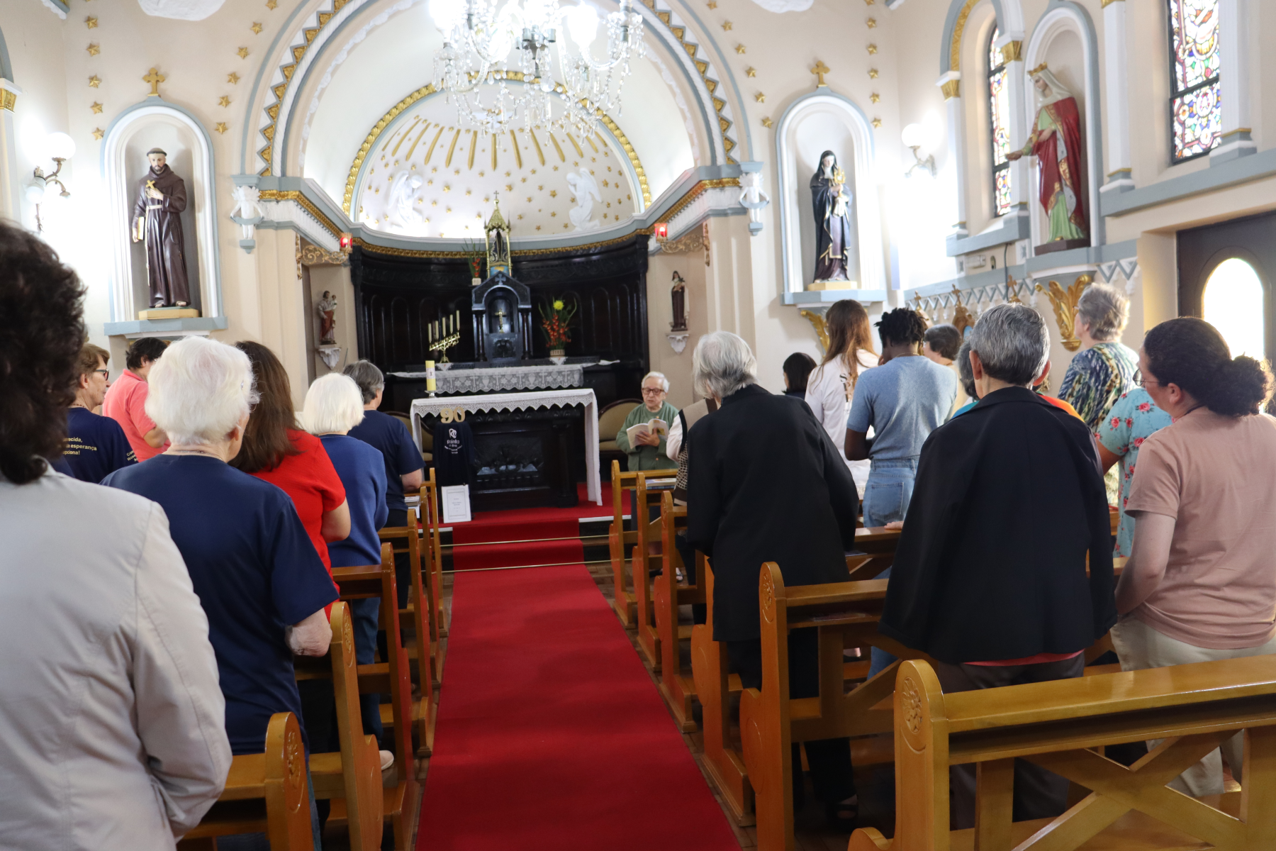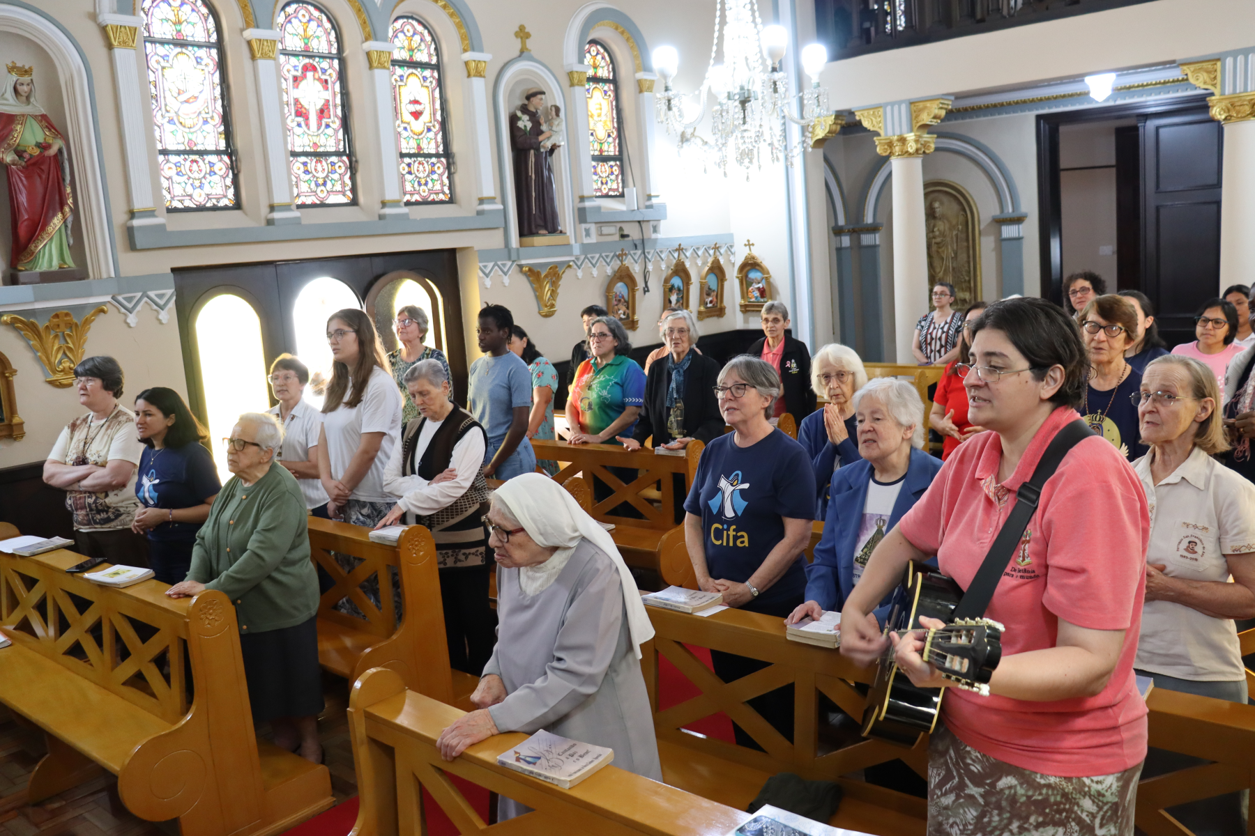 O momento orante foi permeado por louvores. Destaques: a experiência vocacional, a coragem missionária assumida por todas, a caminhada de formação, as memórias e experiências vividas na casa, as irmãs da “primeira hora” que viram a fome e a dor de perto e não desistiram, o sim dado, a coragem dos fundadores, o nosso comprometimento em dar continuidade à missão entre os mais pobres e necessitados, a vida doada, o sim de Madre Clara e suas companheiras, a partilha da vida e da missão, a Palavra de Deus que faz diferença na nossa vida, o legado que Deus semeou no coração dos fundadores, a Eucaristia, o Carisma Franciscano na Igreja, os espaços de missão, o testemunho, a corresponsabilidade dos leigos.