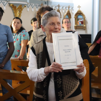 Irmã Iriete Ignez Lorenzzetti, nossa Ministra Geral, agraciou-nos com suas palavras. Convidou-nos a agir como Maria, cuidar umas das outras, ouvir a voz de Deus e, com passo firme, nos colocarmos entre os mais necessitados. Concluiu agradecendo às inúmeras irmãs que viveram nessa casa e contribuíram “alimentando o espírito e confortando o físico”.