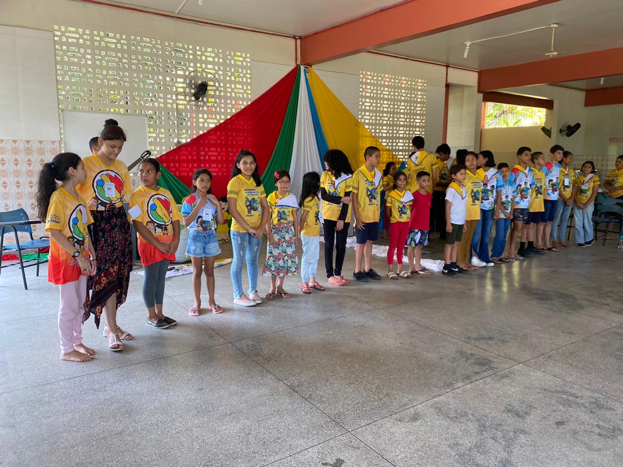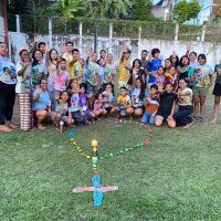 Concluímos nosso encontro com a celebração de envio, onde as crianças e adolescentes receberam o crucifixo da IAM como sinal de renovação do compromisso e continuidade da Missão.