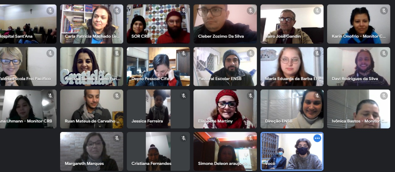 À tarde os profissionais assistiram ao filme “O Milagre da Cela 7”, proposto pela Orientadora Educacional Valéria Piccolo, juntamente com a Ir. Leila Lucini. Mais adiante os profissionais foram divididos em pequenos grupos que precisavam responder a questão, “Como ser Betânia em período de pandemia?”, relacionando com os temas abordados no filme e nas demais dinâmicas ocorridas ao longo do dia.