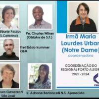 Acolhida à nova equipe: Ir. Maria de Lourdes Urbam - Notre Dame, Presidente Padre Charles Wilmer - Oblato, Frei Blasio, OFM, Ir. Adriane Bertonceli, Franciscana de Nossa Senhora Aparecida , Ir. Laura Gavazzoni - São José, Ir. Elisete Paulus - Santa Catarina e Ir. Nilva - Assessora da CRB.