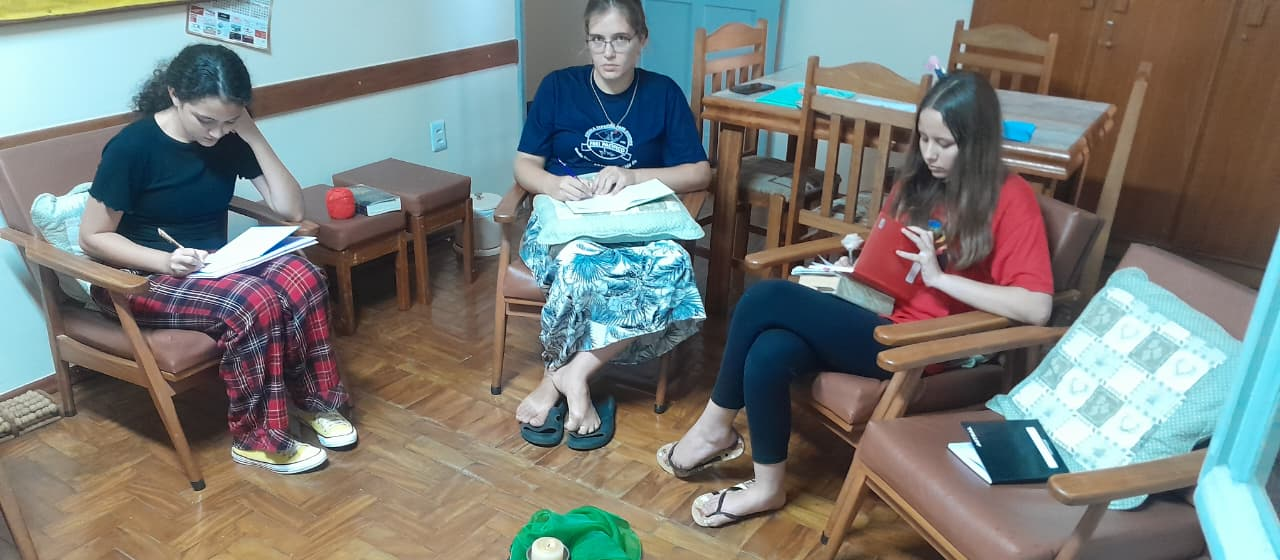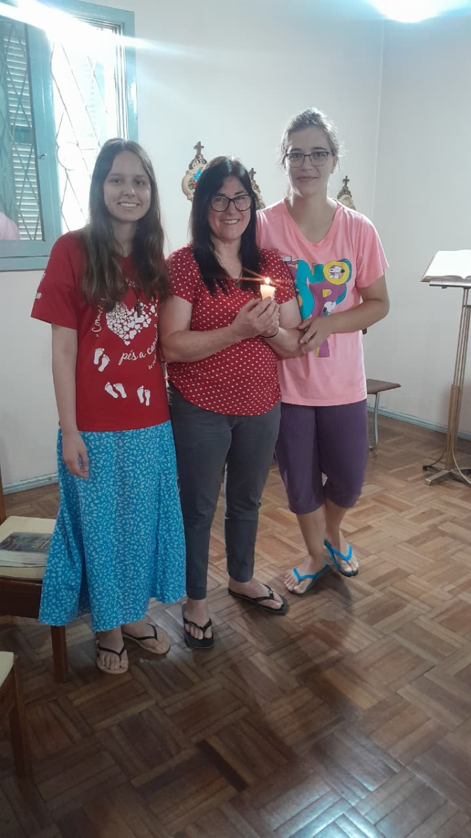 Michele já caminha conosco a um ano, Lorena e Thallya que chegam com seus pais para iniciar sua experiência formativa junto à comunidade.