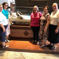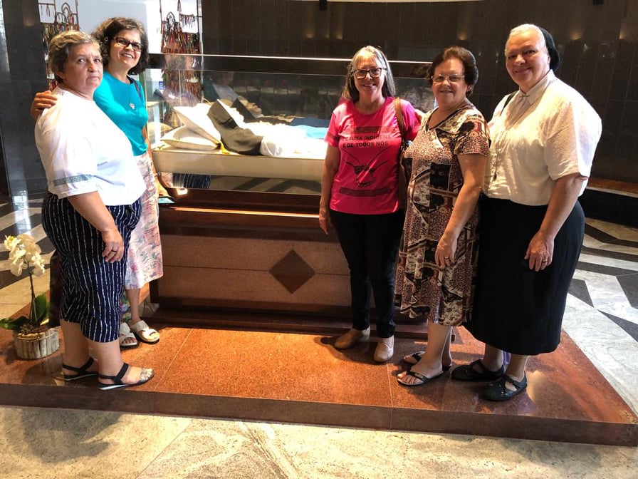 Nas fotos: Irmã Silvânia Aparecida Pereira Coelho, da Congregação da Santíssima Trindade (Rio de Janeiro/RJ); Irmã Iriete Lorenzetti, da Congregação das Irmãs Franciscanas de N. Sra. Aparecida (Porto Alegre/RS) Irmã Lúcia Barbosa de Oliveira, do Instituto Religioso das Irmãs Medianeiras da Paz (Salvador/BA); Irmã Kátia Regina Segateli, das Mensageiras do Amor Divino (Aparecida/SP) e Irmã Marlise Hendges, das Irmãs do Imaculado Coração de Maria em visita ao santuário de Ir. Dulce dos Pobres.