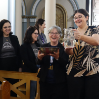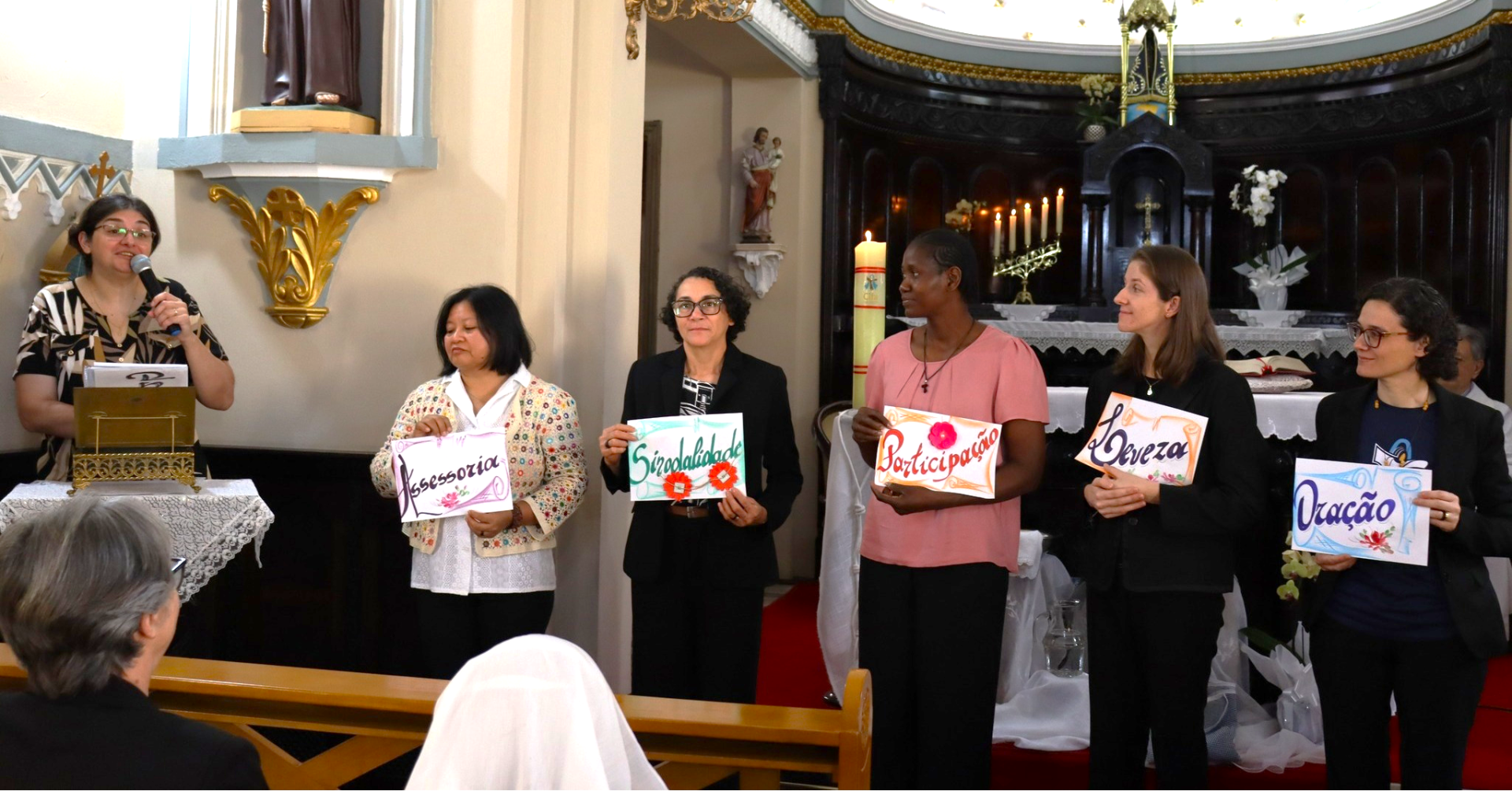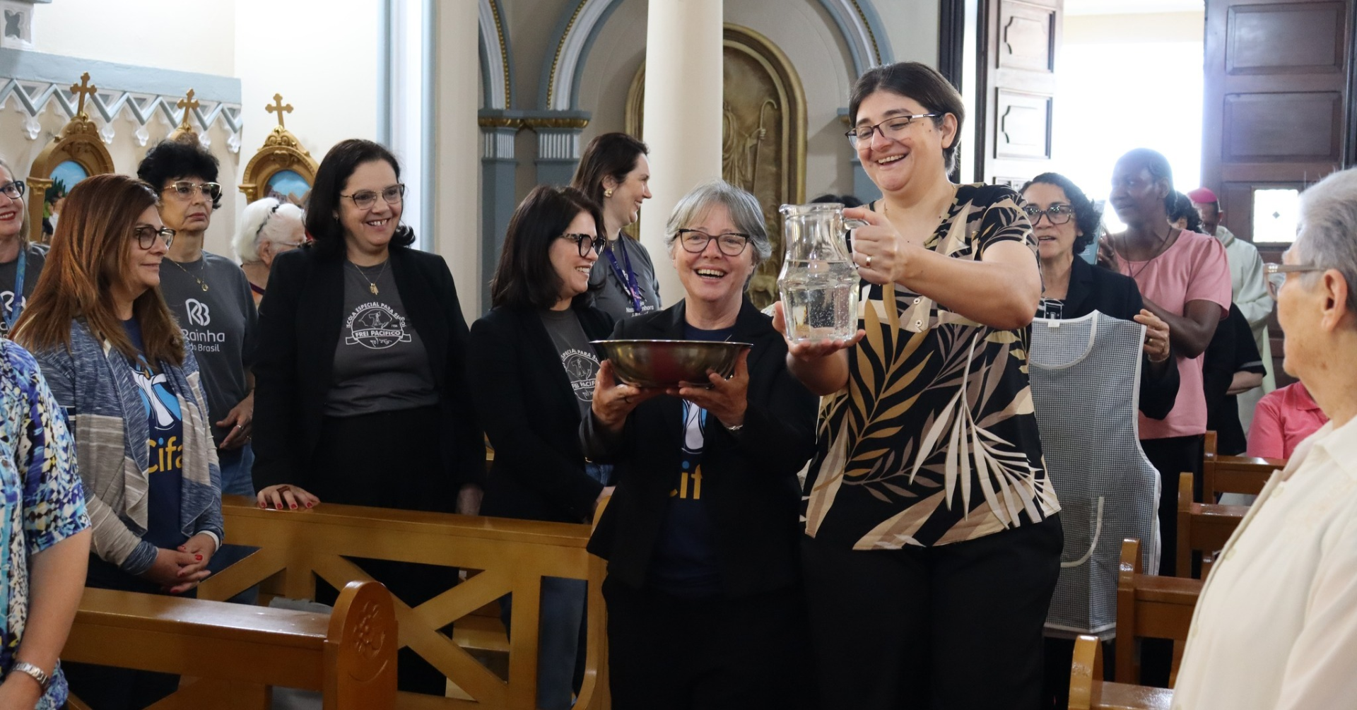Dia 24 as Irmãs encerraram o 27º Capítulo Geral com Celebração Eucarística na Capela da Casa Mãe, presidida por Dom Cleonir Paulo Dalbosco, que foi assessor do Capítulo, e concelebrada por Frei Luiz Turra, OFMCap, Pároco da Paroquia Santo Antonio. A celebração foi marcada pela alegria e ação de graças pelo Capitulo e a esperança e a confiança em Deus para o novo quadriênio 2025-2029. Também foi missa de posse do nosso Governo Geral. As Irmãs Capitulares, irmas das comunidades de Porto Alegre, diretoras das unidades da Rede Franciscana Aparecida e Familia Leiga Franciscana Aparecida, estiveram presente na celebração. Em seguida a missa fez-se uma confraternização. No final da manhã, as irmas foram à Casa Geral, onde os espaços de trabalho da Ministra Geral, Secretaria Geral e Economato são apresentados às Irmãs que vão assumir tais espaços.