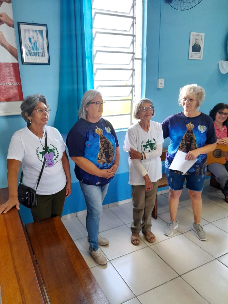 Aconteceu também a celebração de ação de graças pelo trabalho das líderes, coordenação e apoiadoras/es e de modo especial de Ir. Iracema que a partir de hoje deixa este trabalho, pois foi transferida para uma nova missão. A celebração foi coordenada por Ir. Salete e Frei Valdivino. Foram acolhidos Ir. Nair e Frei Matias, que integram a coordenação neste ano. Houve momento de confraternização e amigo secreto.