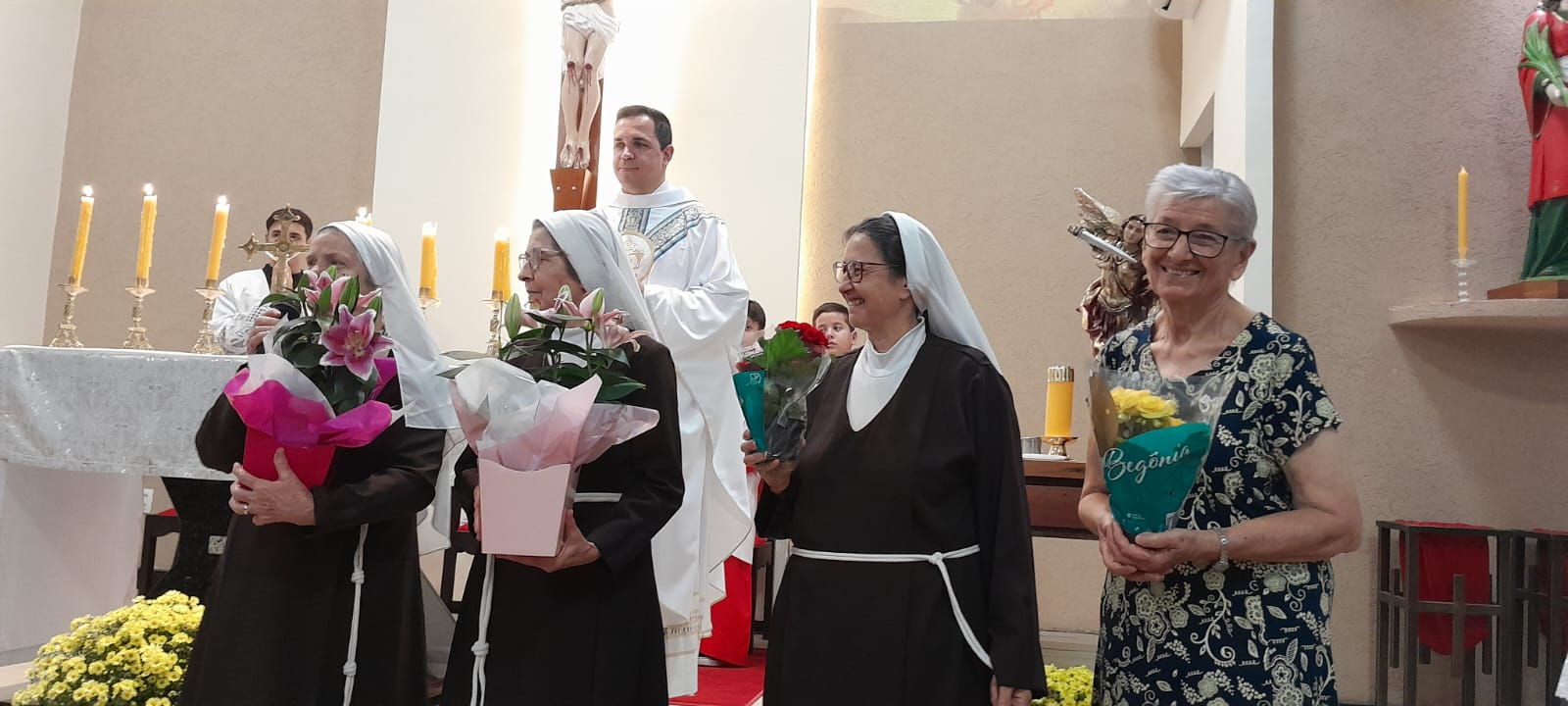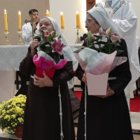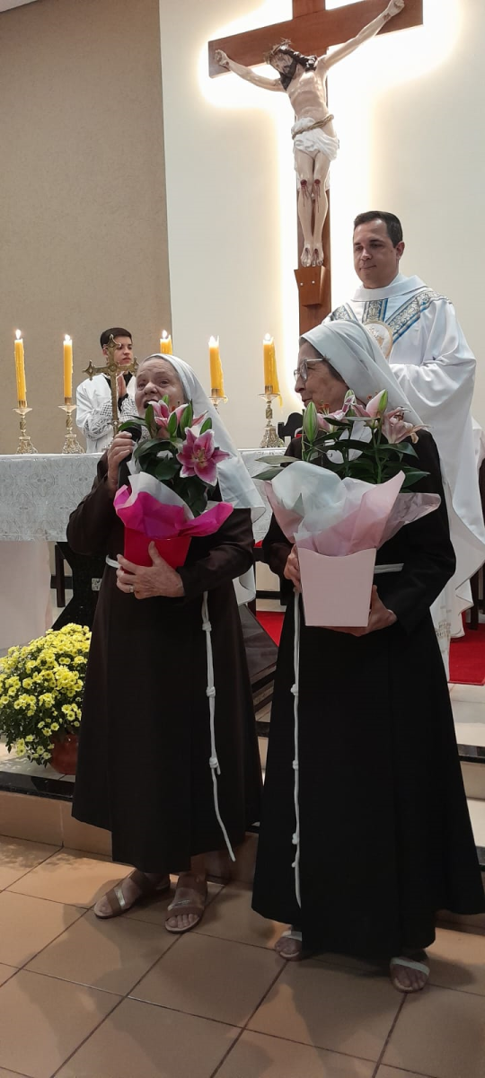 Nós, Irmãs da Betânia Santa Clara, que há poucos dias celebramos nossa padroeira Santa Clara, jubilares em Ouro e Diamantes, fomos homenageadas nas celebrações da Vida Religiosa Consagrada, renovando os Votos de castidade, obediência e pobreza. Estiveram presentes as três Betânias Santa Clara, Porciúncula e Santa Isabel da Hungria, participando da Missa das 18:30 na Igreja – Santa Luzia, em Campo Grande/MS