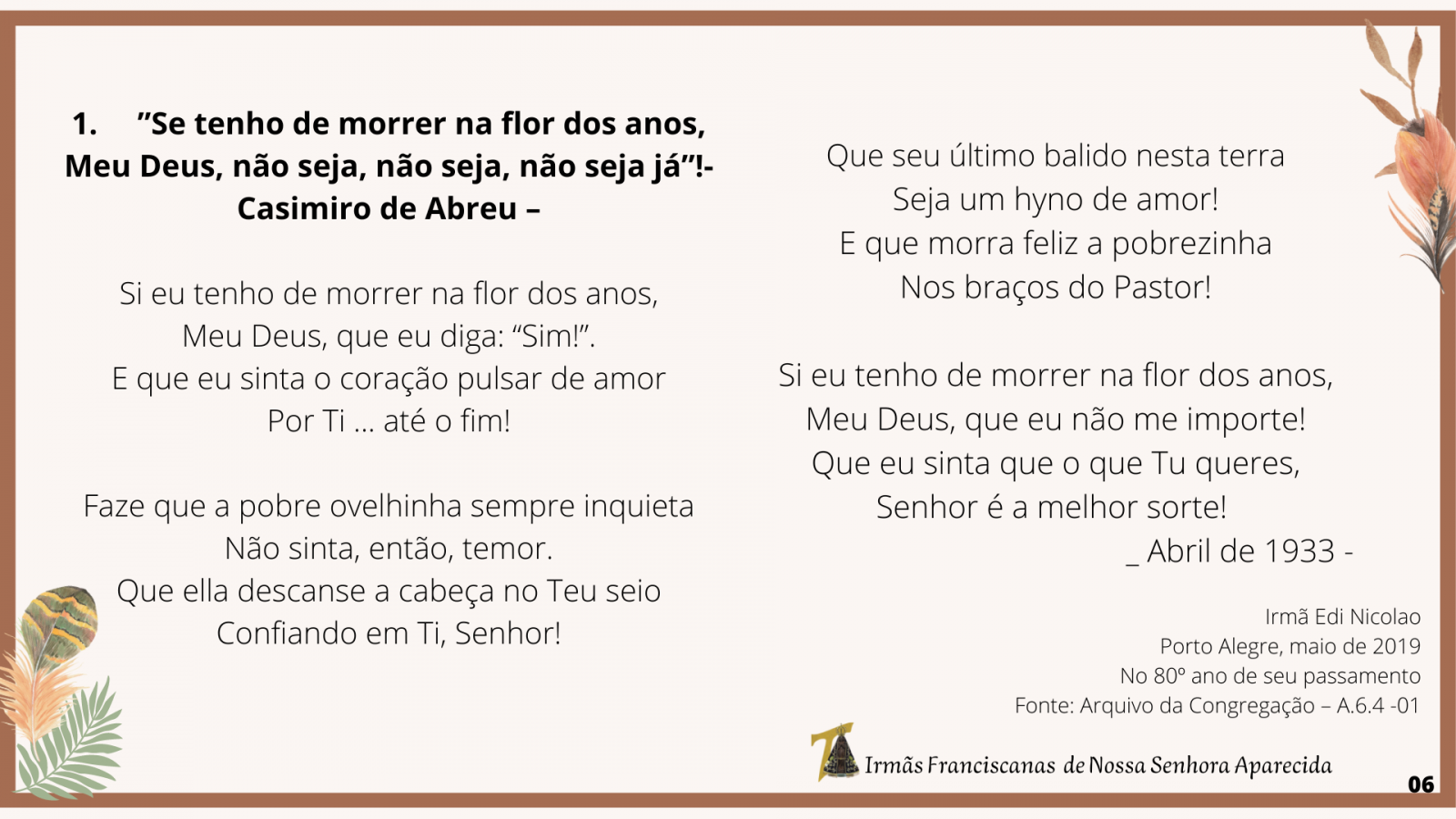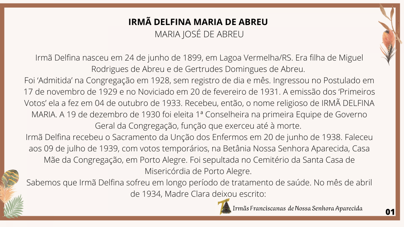 Irmã Delfina Maria de Abreu Síntese biográfica