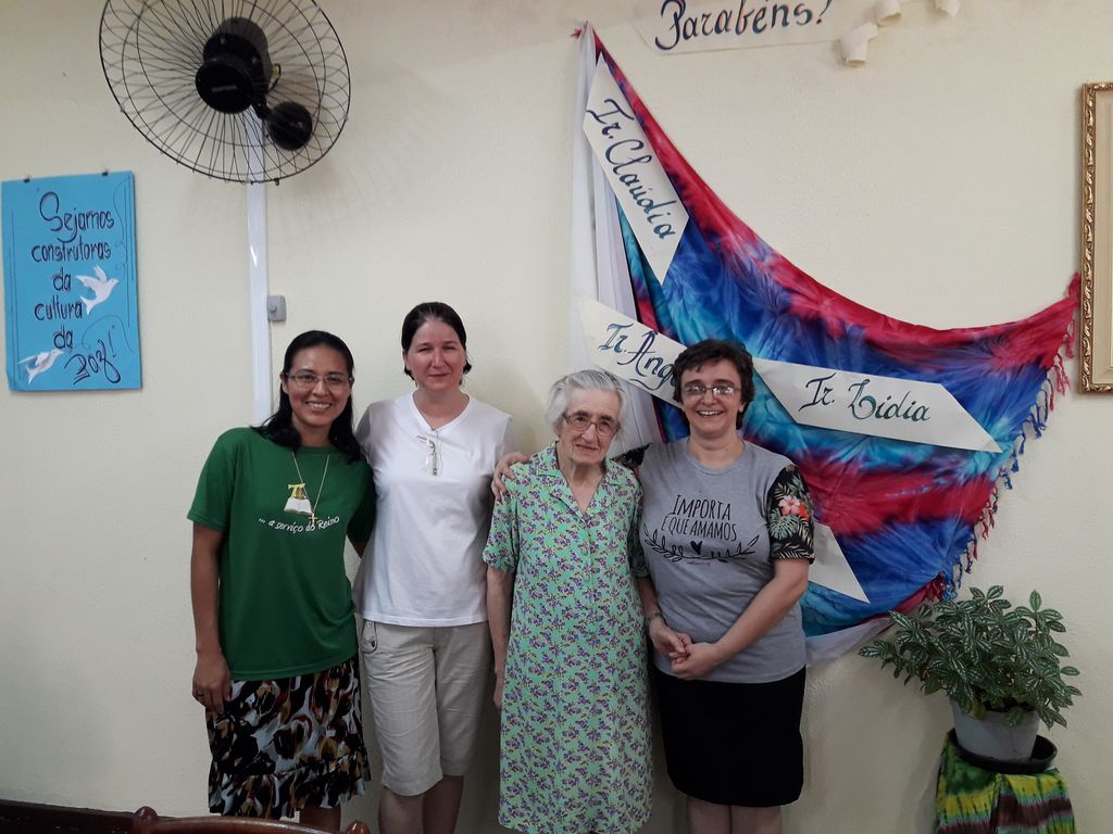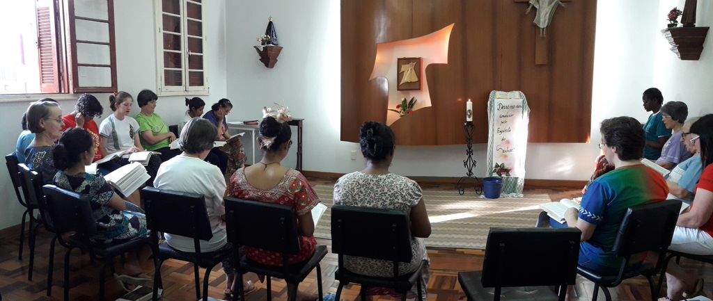 Concluímos na manhã do dia 01 de fevereiro, com a celebração de Renovação dos Votos das Irmãs Junioristas (Ir. Keila Barbosa, Ir. Saionara dos Santos, Ir. Andreia Müller, Ir. Lídia Chuê, Ir. Julianne Silva e Ir. Girlane Menezes). Ao final da celebração, com alegria enviamos as Irmãs Keila e Idelsa Reginatti que seguem para a missão na Guiné-Bissau e na Bolívia, respectivamente. O Frei Luis Fernando, OFM que celebrou conosco, também o enviamos para a missão que lhe foi confiada em Roraima.