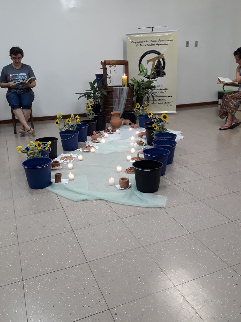 O retiro foi preparado pelas Irmãs da Equipe de Formação e contou com a assessoria de Ir. Vânia Martins. Durante estes dias, fomos convidadas, a exemplo da Samaritana (Jo 4, 5-30) a tomar o nosso balde e retornarmos à fonte, voltarmos ao primeiro amor, renovando o nosso ser consagrada. Foram dias intensos de oração no encontro com a Palavra a inspiradas em Marta, Maria e Lázaro conforme nos é apresentado no Evangelista João.