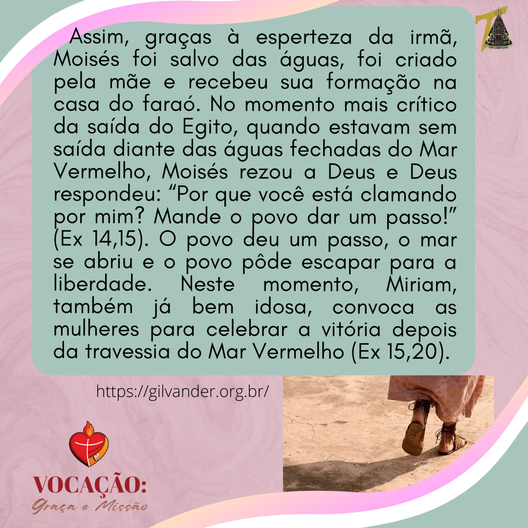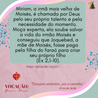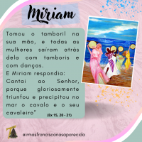 Estamos iniciando o mês de maio, mês de Maria, das mães...e é com alegria que queremos compartilhar com vocês um pouquinho das características de algumas das mulheres da Bíblia; mulheres que ao longo da história puderam dedicar-se à família e ao serviço do Reino de Deus, mulheres Santas; mulheres que marcaram história e a vida de muitas pessoas, que transformaram vidas com suas lutas e conquistas a favor do povo. Hoje conheceremos Miriam.