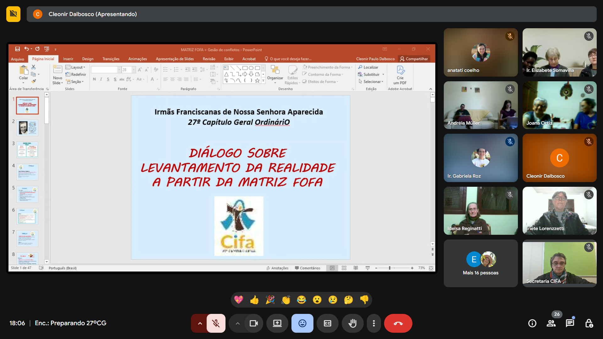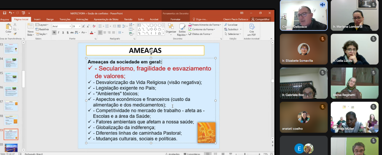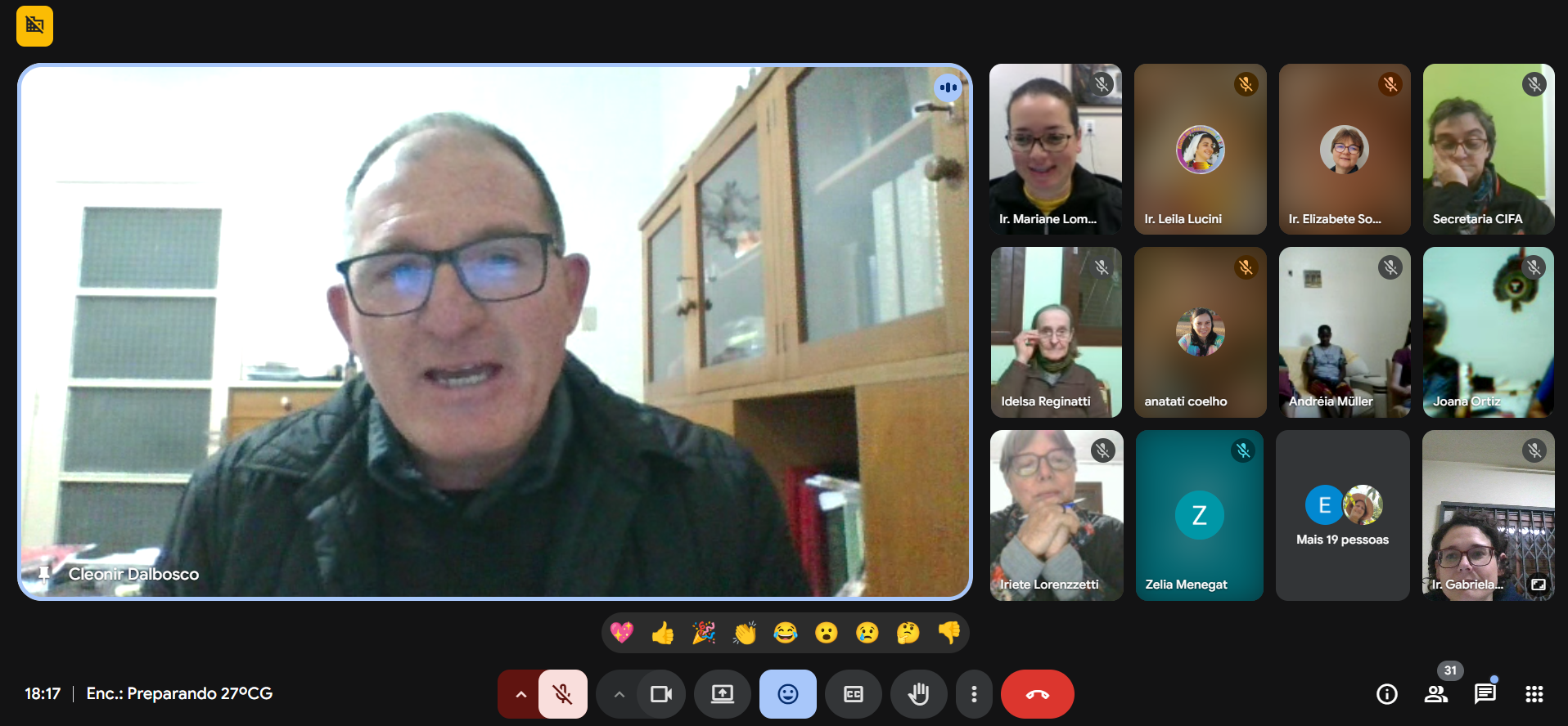 Na sexta-feira, dia 18 de julho, as Irmas se encontraram de forma online com o assessor Dom Cleonir Dalbosco. Depois da avaliação feita nas Betânias com o instrumento FOFA, foi um momento de conversa sobre os resultados, e de escutar o parecer do assessor. Com a participação de todas vamos fazendo caminho “De Betania para o mundo, anunciando o Reino, com alegria e esperança. ”