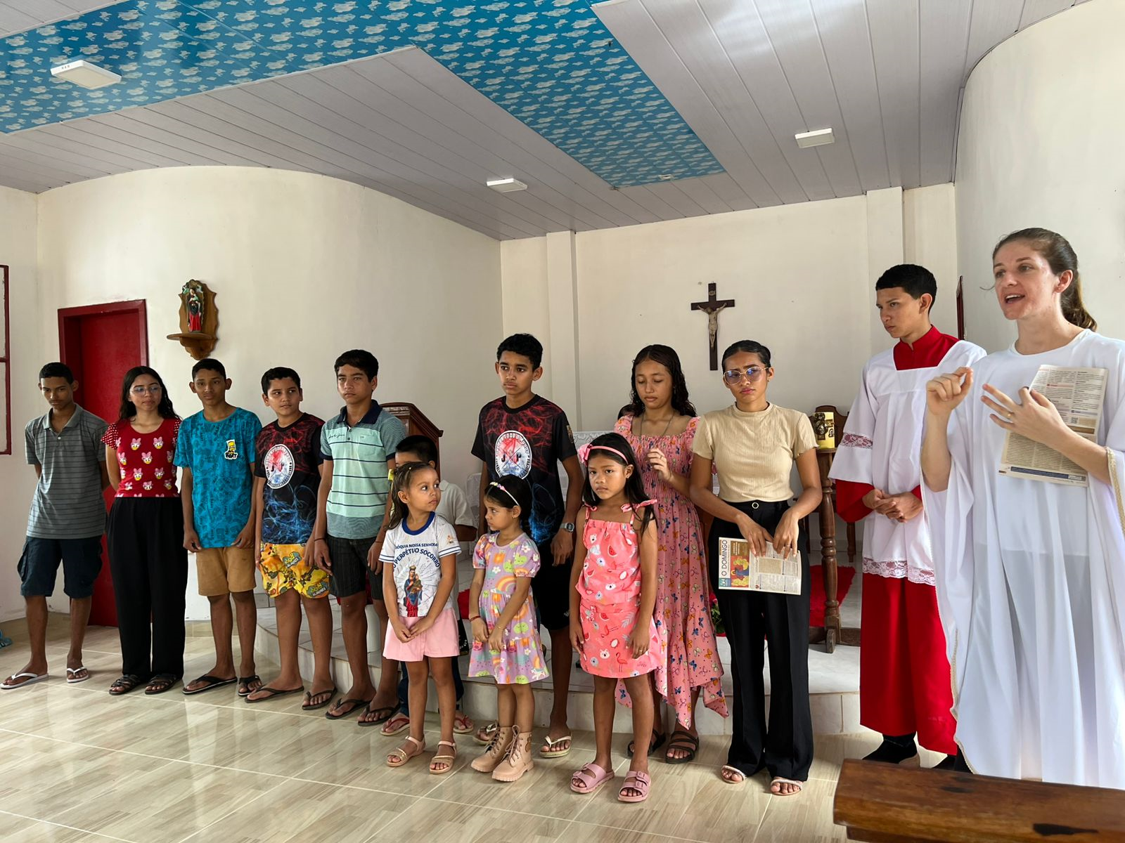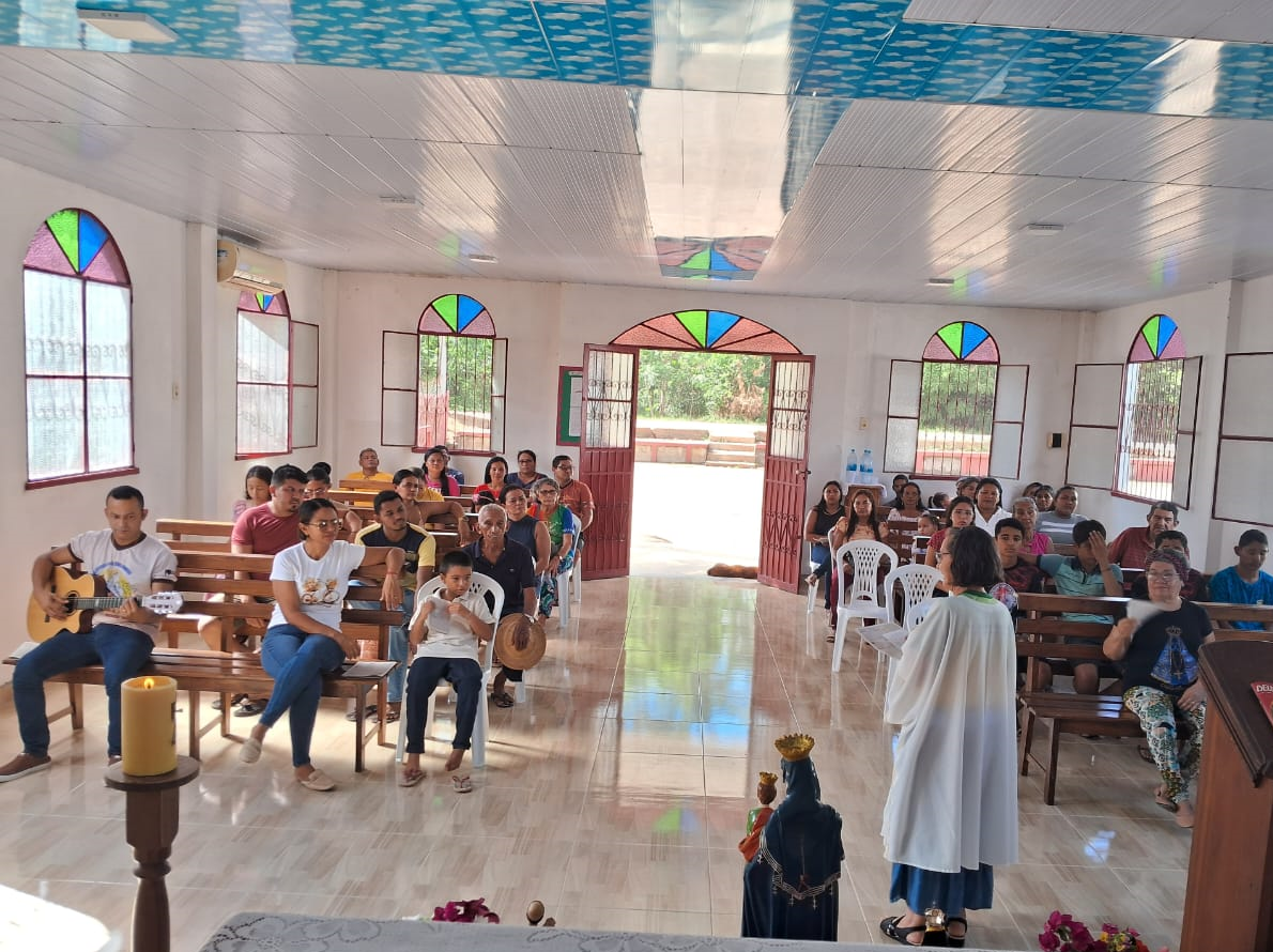 No domingo, 17 de agosto, na Solenidade da Assunção de Nossa Senhora e celebração da Vocação à Vida Religiosa Consagrada, nós Irmãs e formandas da Betânia Ir. Sol e Ir. Água, estivemos presentes nas celebrações em duas comunidades do Careiro da Várzea/AM, bem como nas Paróquias São Lázaro e Área Missionária Nossa Senhora dos Navegantes, em Manaus/AM. Durante essas celebrações, tivemos a oportunidade de partilhar nosso carisma e nossa presença, testemunhando a beleza do chamado à Vida Religiosa. Foi também ocasião para convidar outros e outras a se deixarem inquietar pelo chamado de Deus, encorajando-os a assumir, com alegria e esperança o seu chamado Vocacional.