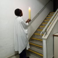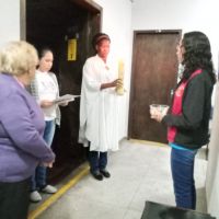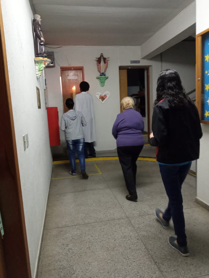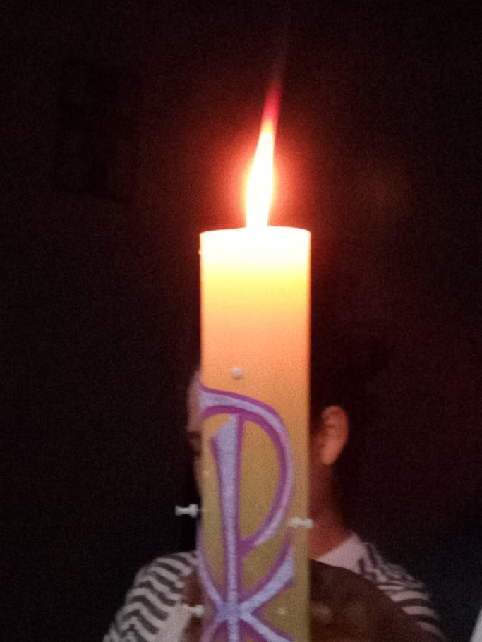 Nessa certeza, nós, Irmãs e Formandas, no sábado de aleluia, nos unimos a todos os profissionais da Escola Frei Pacífico, às crianças que não puderam celebrar a Páscoa aqui na escola, mas à luz do fogo novo que vem reacender as esperanças e clarear a nossa escuridão, lembramos e rezamos para cada um, com carinho, percorrendo com o Círio Pascal, os espaços da escola que nos lembram a vossa presença aqui conosco.