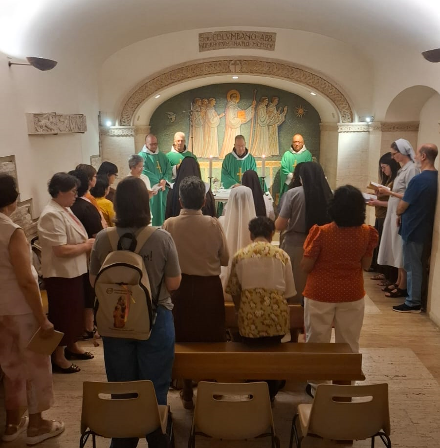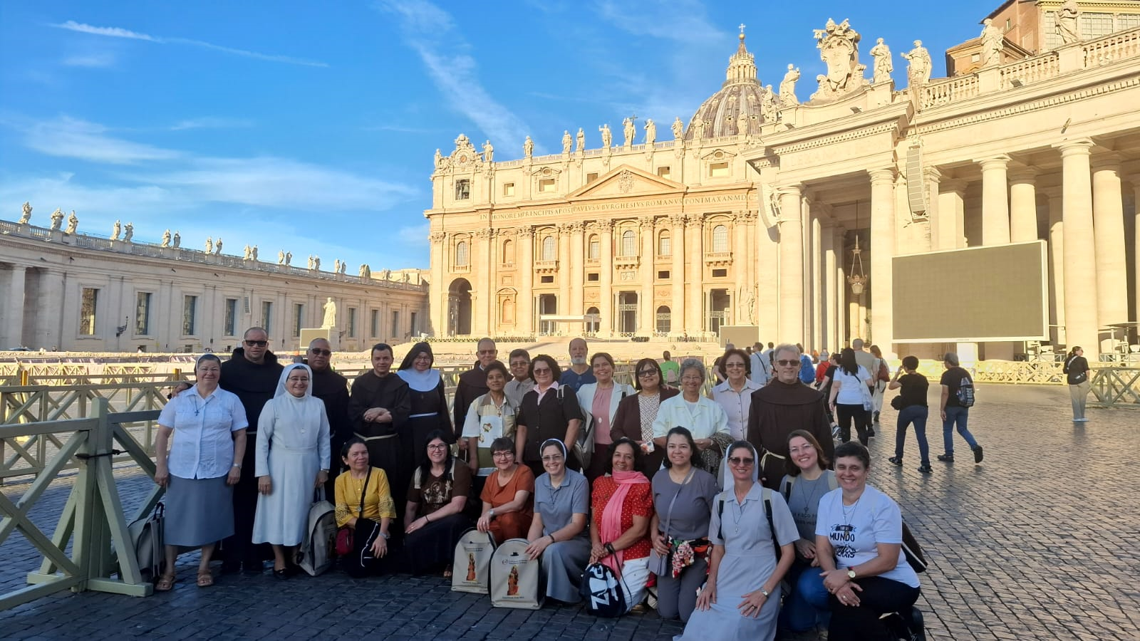 Iniciamos o dia passando pela Porta Santa no Vaticano e depois celebramos a eucaristia numa das diversas capelas existentes na cripta do Vaticano. Foi um momento muito especial de comunhão. Visitamos os túmulos dos Papas, o túmulo de São Pedro, de João XXIII, vimos a estátua da Pieta... são tantos detalhes que nem tudo pode ser visto.