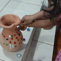 Meditamos por meio da dinâmica do vaso, na qual cada participante deixou ali a sua digital, como sinal de que cada pessoa é única, importante e essencial na construção da família de Deus.