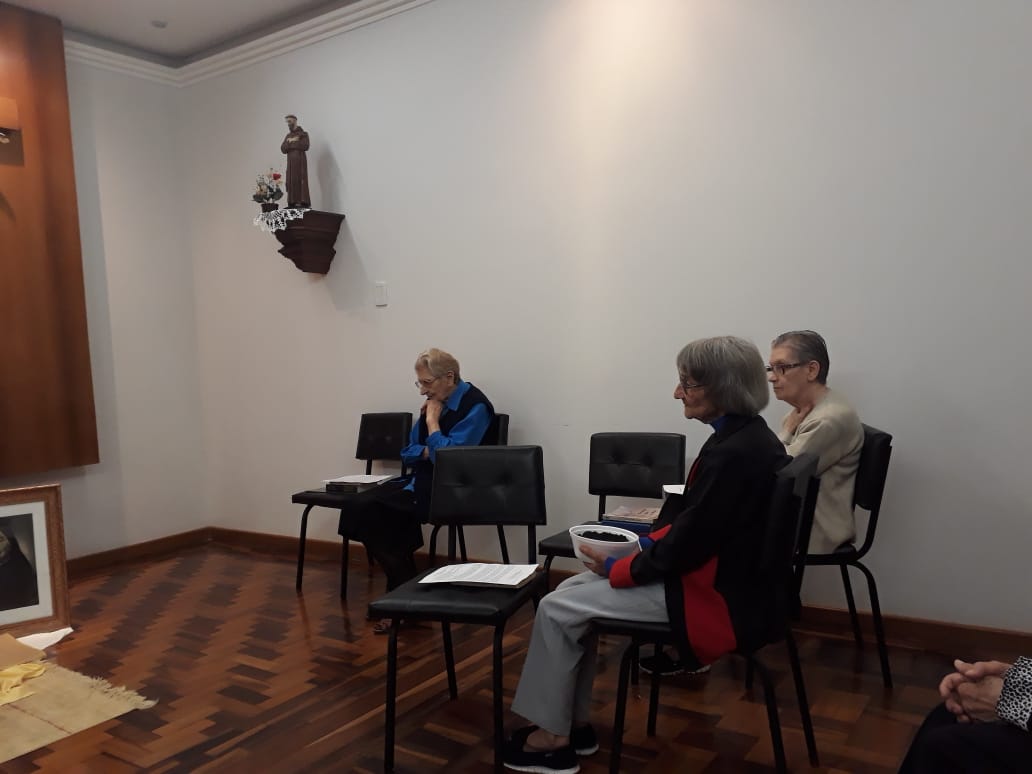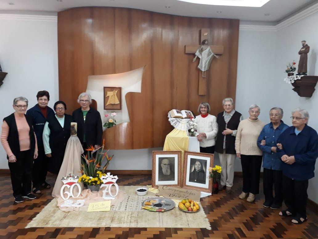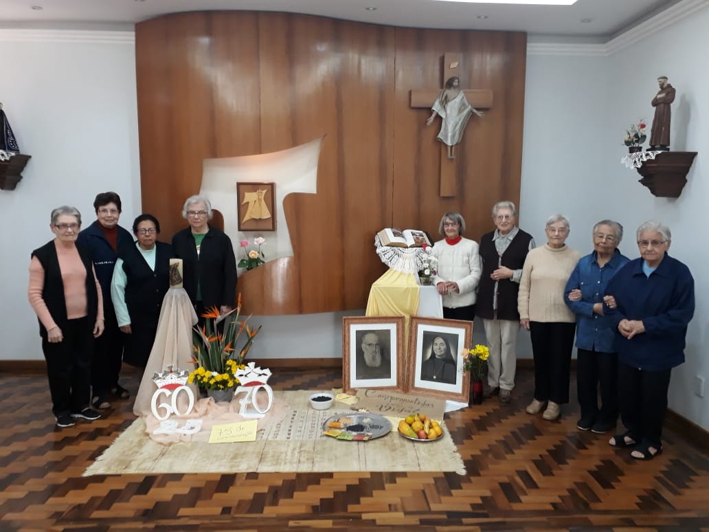 Entre os dias 24 de Abril e 1 de Maio aconteceu o Retiro das Irmãs Jubilares, no Centro de Formação Madre Celina, em Porto Alegre/RS. O grupo foi acompanhado pela Ir. Claudia Spies Klein, pela equipe de formação. O Tema do Retiro foi: “Comprometidas com a vida”. Cada Irmã foi convidada a rezar o seu compromisso com a vida e a missão, iluminadas pelos Dons do Espírito Santo, acompanhadas diariamente pelos seus frutos que levam à atitudes concretas. Orientadas pela Palavra de Deus e os documentos da Missão, formação, Espiritualidade e Constituições da congregação juntamente o seu projeto pessoal, sua caminhada junto à fraternidade, ou seja, a Betânia espaço teologal, bem como a sua vida em missão junto aos mais pobres. O Caminho espiritual dos sete dias convidou-as a contemplar elementos da natureza que fortalecem a espiritualidade Francisclariana e a perceber os frutos de Deus na vida de cada Irmã que é dom de Deus. As Irmãs com muita gratidão alegraram na partilha da vida e Missão das Irmãs Jubilares.