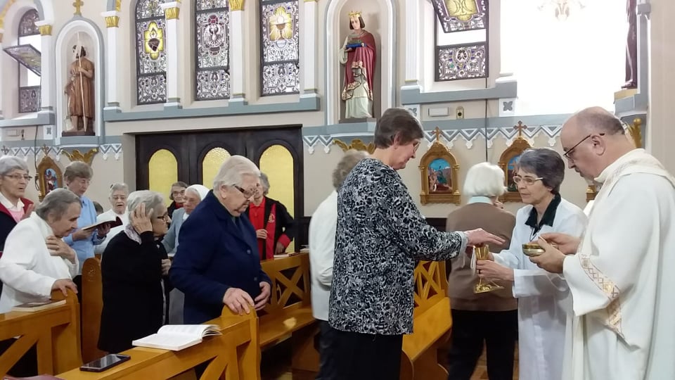 Neste grupo estão, na maioria, as mais idosas (até 99 anos), que tiveram a graça de conhecer e conviver com a Fundadora Madre Clara Maria, que foi para nós prova testemunhal na vivência de religiosa consagrada.