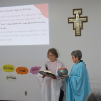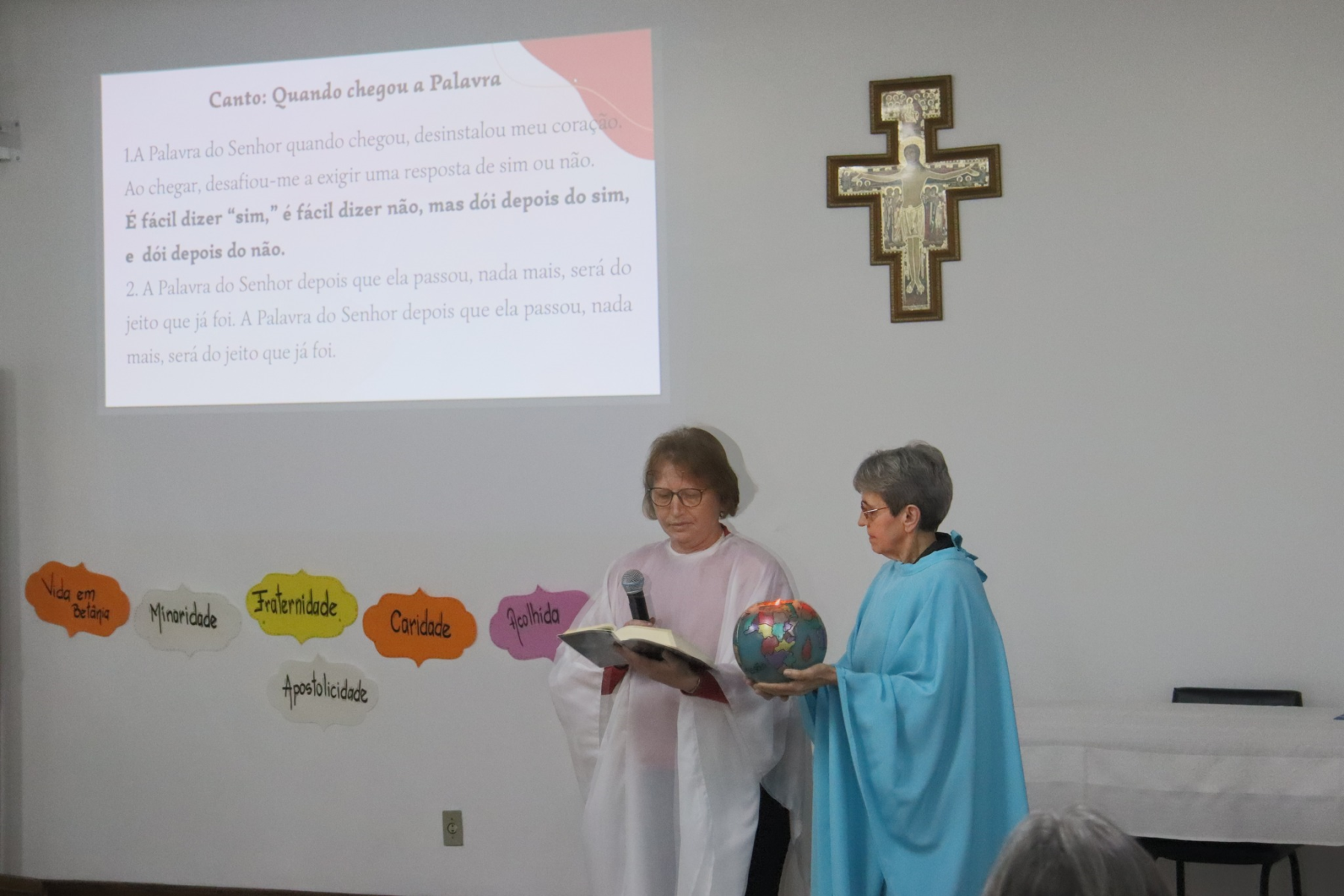 As Irmãs deram continuidade à Assembleia Pré-Capitular. Este terceiro dia iniciou com um profundo momento de oração conduzido pelas irmãs e formandas da Guiné-Bissau, que nos convidaram a refletir: “Que frutos nossa Congregação tem oferecido à Igreja e ao mundo? ”